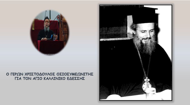 «Πλήρης πνευματικής ευφροσύνης από βάθους ψυχής δοξολογώ τον Άγιο των αγίων Παντοκράτορα Τριαδικό Κύριο και Θεό μας για την αγιοκατάταξη του πανοσίως βιώσαντος μακαριστού Μητροπολίτου Εδέσσης, Πέλλης και Αλμωπίας αγίου Καλλινίκου, διατηρώντας αδιαλείπτως ζωηρή τη μνήμη της αγιότητος και των πολλαπλών εν Αγίω Πνεύματι χαρισμάτων του. Προσωπικώς τα εβίωσα κατά την διακονία μου ως ιεροκήρυξ από το έτος 1969 μέχρι το 1976 υπό την πατρική αρχιερατική του σκέπη (έχοντας χειροτονηθεί από τα τίμια χέρια του Διάκονος στις 11.9.1969, Πρεσβύτερος στις 19.10.1969 και Πνευματικός στις 23.1.1970). Την αγιοπνευματική χαρά του ευσεβούς κλήρου και λαού μας επιτείνει το γεγονός ότι είναι πρώτη φορά, που μετά πολλές δεκαετίες απολαμβάνουμε αγιοκατάταξη αρχιερέως.