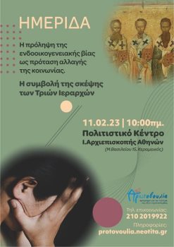 “Ο ορισμός του φαινομένου της ενδοοικογενειακής βίας, όσο περιφραστικός και αν γίνει, αφήνει την κοινωνία που γεννά τη βία στο επίπεδο των επιμέρους αναγκαίων προσαρμογών, χωρίς το αίτημα της ουσιαστικής αλλαγής. Δεν ασκεί κριτική ούτε σε θεσμούς, ούτε σε σχέσεις, ούτε στο κοινωνικό-οικονομικό πλαίσιο. Μοιάζει να ζητά βελτιώσεις και όχι εκ βάθρων αλλαγές”, τονίζει το Ίδρυμα Νεότητας και Οικογένειας της Ιεράς Αρχιεπισκοπής Αθηνών με αφορμή εκδήλωση που θα πραγματοποιηθεί στις 11 Φεβρουαρίου στο πλαίσιο του προγράμματος «Πρωτοβουλία για την πρόληψη της ενδοοικογενειακής βίας».