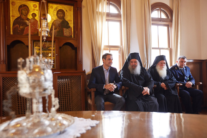 Όπως έγραψε το ope.gr, η Ιερά Κοινότητα μετά την ενημέρωση που έλαβε από τον Πολιτικό Διοικητική του Αγίου Όρους, Αλκιβιάδη Στεφανή, σχετικά με την προγραμματισμένη επίσκεψη, απέστειλε επιστολή προς τον κ. Μητσοτάκη με την οποία τον ενημερώνει ότι τον αναμένει “ολοθύμως” μαζί με την συνοδεία του. Μάλιστα, ενημερώνει ακόμη ότι στο πλαίσιο της επίσκεψης θα συγκληθεί την Παρασκευή, 4 Ιουλίου, Πανηγυρική Έκτακτη Διπλή Ιερά Σύναξη κατά τα θέσμια. Το κείμενο της επιστολής προς τον Πρωθυπουργό υπογράφουν άπαντες εν τη κοινή Συνάξει Αντιπρόσωποι και Προϊστάμενοι των είκοσι Ιερών Μονών του Αγίου Όρους.