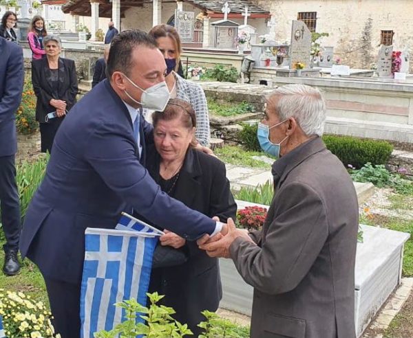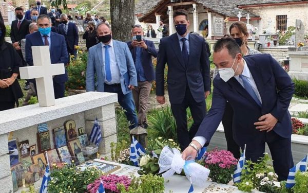 “Με τη συμπλήρωση 2 ετών απο το θάνατο του Κωνσταντίνου Κατσίφα ανήμερα της 28ης Οκτωβρίου, είχα σήμερα την ευκαιρία να συλλυπηθώ τους γονείς του και να αφήσω ένα λουλούδι στο μνήμα του στους Βουλιαράτες” έγραψε στην ανάρτησή του ο κ. Κώστας Βλάσης υφυπουργός Εξωτερικών, με αρμοδιότητα τα θέματα του Απόδημου Ελληνισμού για την επίσκεψή του στο μνήμα του Κωνσταντίνου Κατσίφα όπου άφησε ένα λουλούδι ενώ συνάντησε και τους γονείς του.