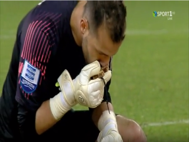 Τον ξύλινο Σταυρό του ασπάστηκε μετά το τέλος του αγώνα με τον Ολυμπιακό ο Σέρβος τερματοφύλακας της Λαμίας, Μπόγιαν Σαράνοβ ο οποίος με την εντυπωσιακή του εμφάνιση αλλά και τη βοήθεια του Θεού έδωσε τη νίκη στην ομάδα του (σ.σ. Λαμία) επί του μεγάλου της αντιπάλου (σ.σ. Ολυμπιακός). Μόλις τελείωσε ο αγώνας έσκυψε και σε στάση προσευχής φίλησε τον ξύλινο Σταυρό του με ευλάβεια κάνοντας παράλληλα το Σταυρό του. Αξιοσημείωτο είναι ότι μέσα στις πολλές επεμβάσεις που πραγματοποίησε κατά τη διάρκεια του αγώνα, απέκρουσε και πέναλτι του Κώστα Φορτούνη. Στο τέλος -όπως προαναφέρθηκε- και σε πανελλήνια ζωντανή μετάδοση ο Σέρβος τερματοφύλακας ασπάστηκε τον φύλακα- άγγελό του, το Σταυρό του εκπληρώνοντας το τάμα του.