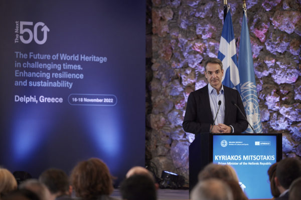 Για μια «θλιβερή και προκλητική υποχώρηση από τα ανθρωπιστικά ιδεώδη» έκανε λόγο ο Πρωθυπουργός Κυριάκος Μητσοτάκης αναφερόμενος στην βεβήλωση της Αγίας Σοφίας στο διεθνές συνέδριο «The Next 50: The Future of World Heritage in Challenging Times, Enhancing Resilience and Sustainability», που διοργανώνει στους Δελφούς το Υπουργείο Πολιτισμού και Αθλητισμού σε συνεργασία με την UNESCO.