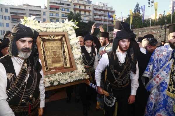Σήμερα, Δευτέρα 14 Οκτωβρίου στις 5 μ.μ. το απόγευμα, στο Μνημείο Του Ποντιακού Ελληνισμου στην πλατεία της Αγίας Σοφίας της Θεσσαλονίκης πραγματοποιήθηκε η υποδοχή του Ιερού Εικονίσματος της Παναγίας Σουμελά από το Βέρμιο.