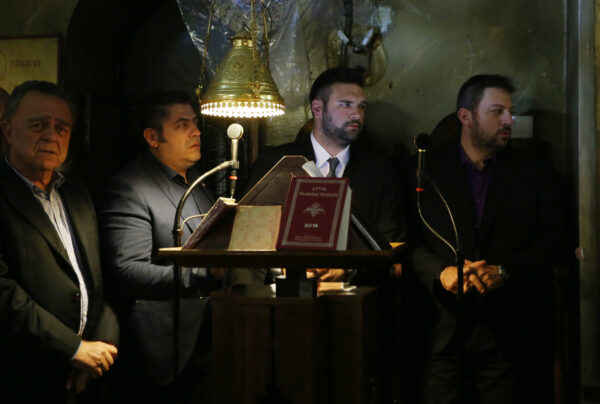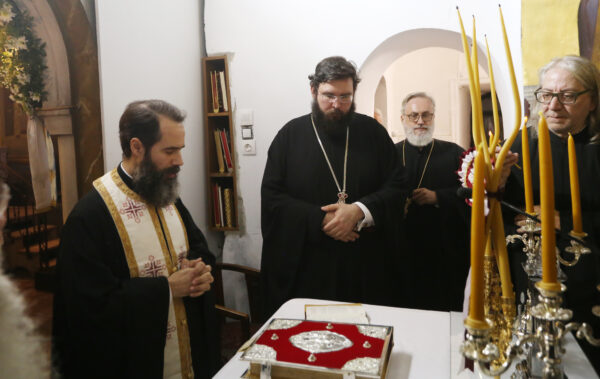 Ολοκληρώνοντας τον χαιρετισμό του, ο Αρχιεπίσκοπος παρουσίασε τον νέο Πρωτοσύγκελλο της Αρχιεπισκοπής π. Βαρνάβα Θεοχάρη, χαρακτηρίζοντάς τον ήρεμο, ταπεινό και εργατικό.