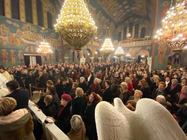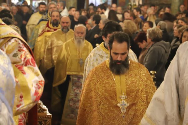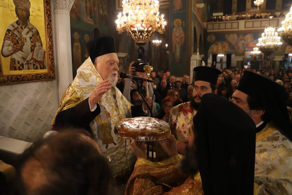 Τον Σεβασμιώτατο πλαισίωναν ο Πρωτοσύγκελλος της Αρχιεπισκοπής Αρχιμανδρίτης Βαρνάβας Θεοχάρης και ιερείς της Αρχιεπισκοπής Αθηνών.