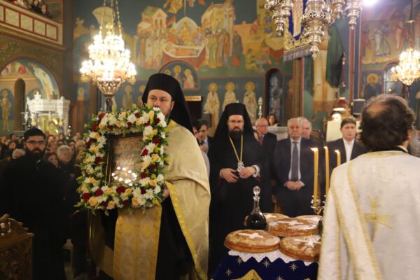 Με μεγάλη προσέλευση πιστών, που έσπευσαν να προσκυνήσουν την Εικόνα του Αγίου Νικολάου στην Καλλιθέα, τελέστηκε ο πανηγυρικός Εσπερινός, χοροστατούντος του Σεβασμιωτάτου Μητροπολίτου Κορωνείας, κ. Παντελεήμονος.