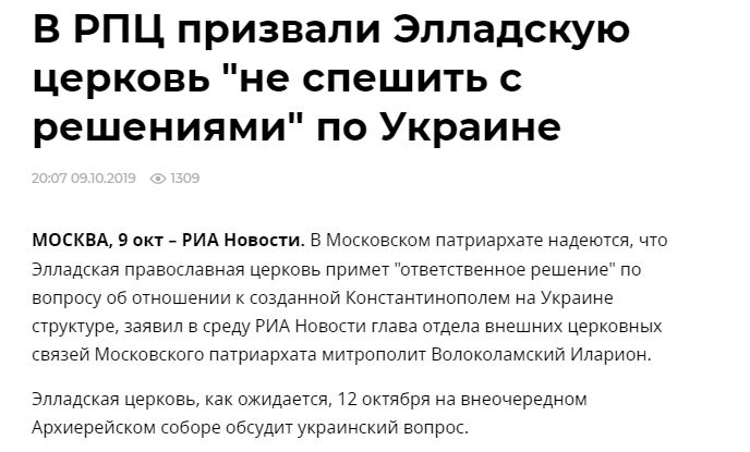 Με δηλώσεις του στο πρακτορείο RIA Novosti, ο επικεφαλής του Τμήματος Εξωτερικών Εκκλησιαστικών Σχέσεων του Πατριαρχείου της Μόσχας, Μητροπολίτης Βολοκολάμσκ κ. Ιλαρών κάλεσε τους Έλληνες Ιεράρχες να λάβουν μια «υπεύθυνη απόφαση»