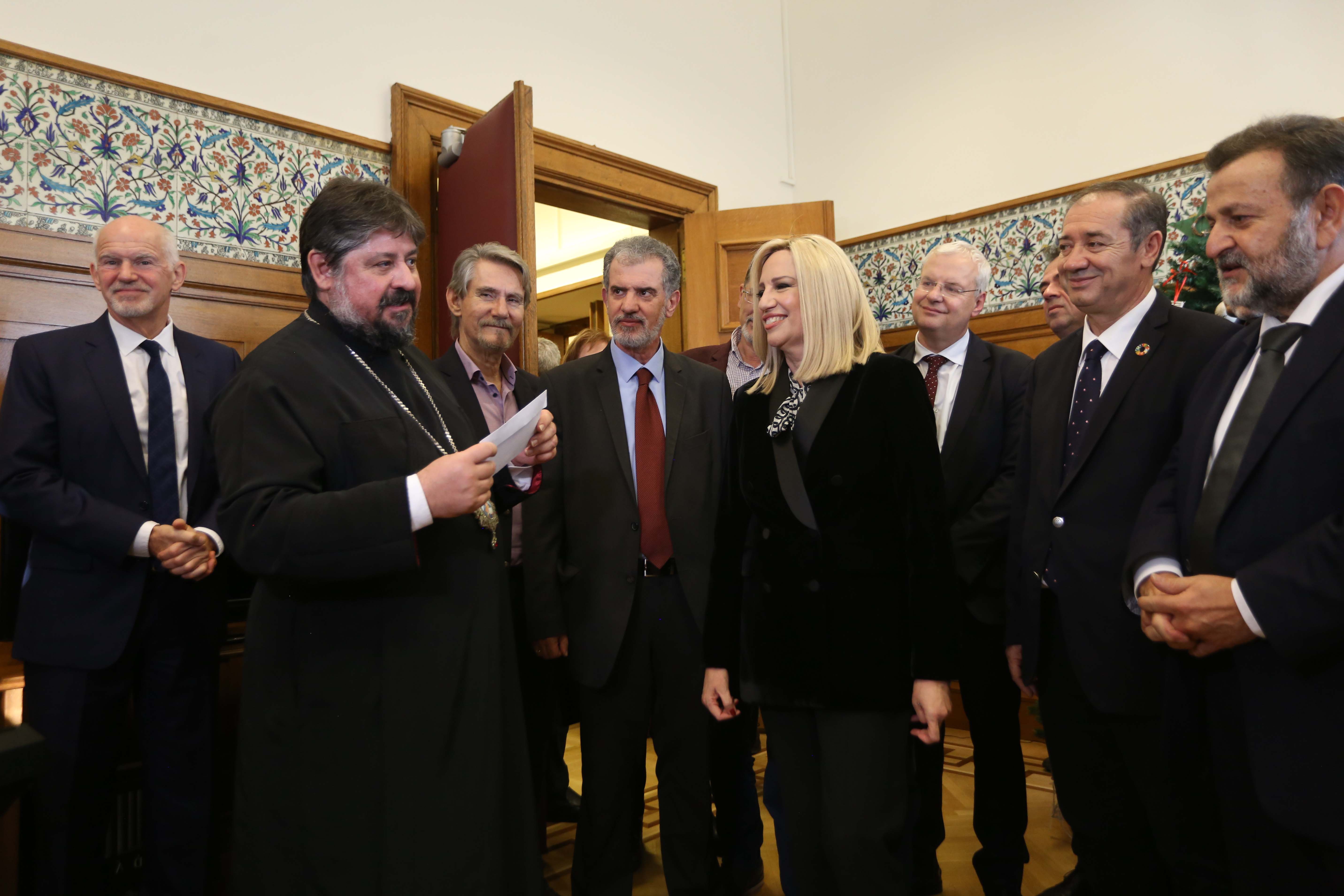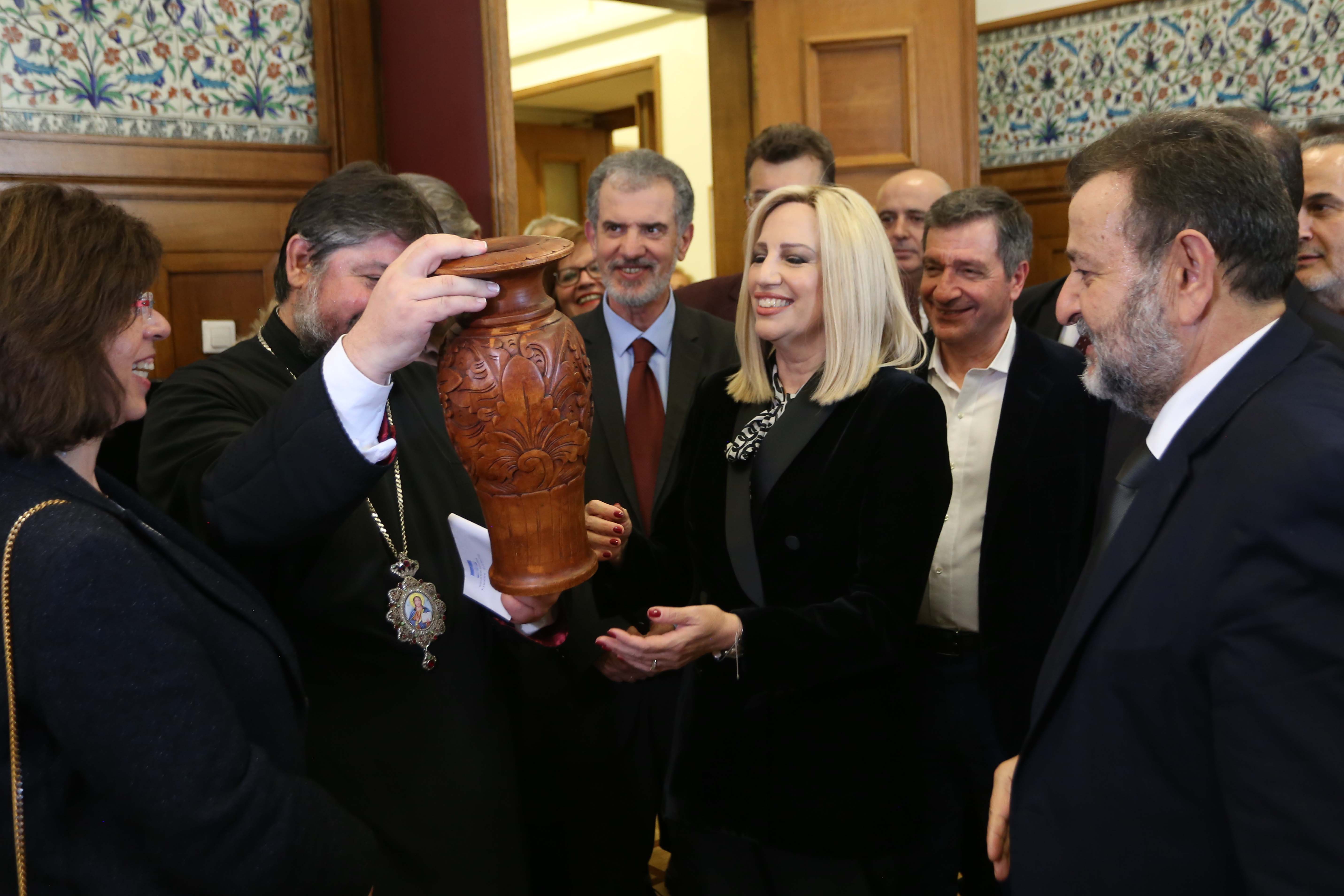 Ως αντίδωρο ο Μητροπολίτης έδωσε στην Φώφη Γεννηματά ένα ξυλόγλυπτο διακοσμητικό.