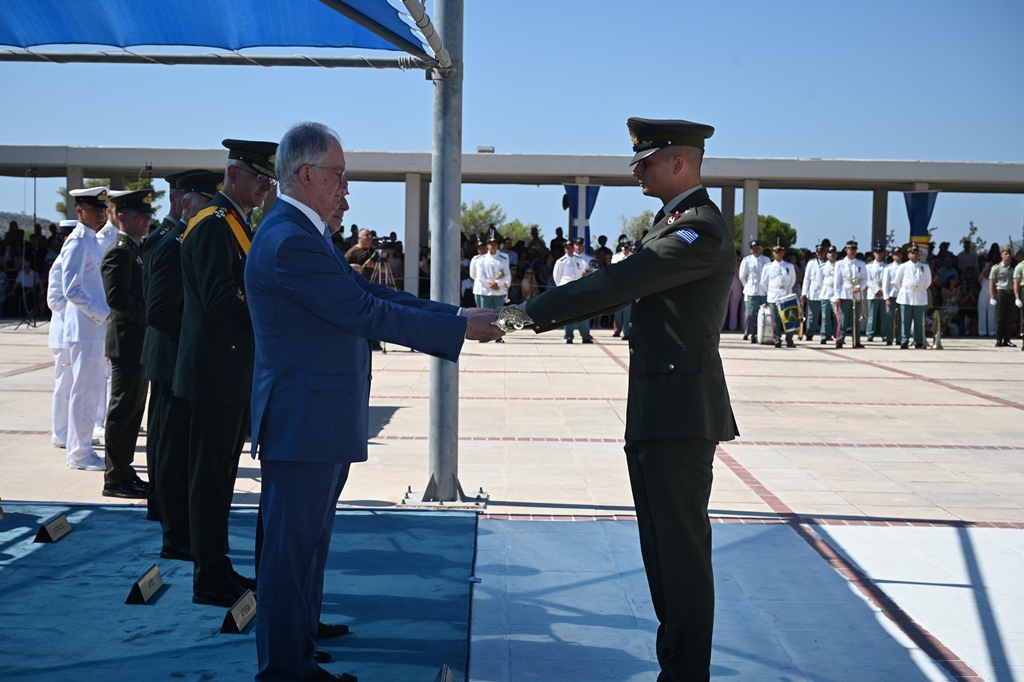 Τέλος, η Α.Ε ο Πρόεδρος της Δημοκρατίας κ. Κωνσταντίνος Τασούλας επέδωσε τα ξίφη στις οικογένειες των δύο εκλιπόντων κατά το έτος 2023 Ευέλπιδων ΙΙας Τάξης.