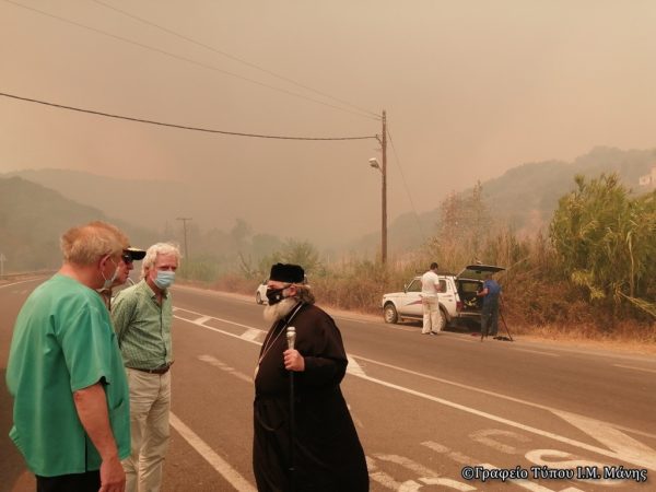 Ο Μητροπολίτης Μάνης στο μέτωπο της πυρκαγιάς