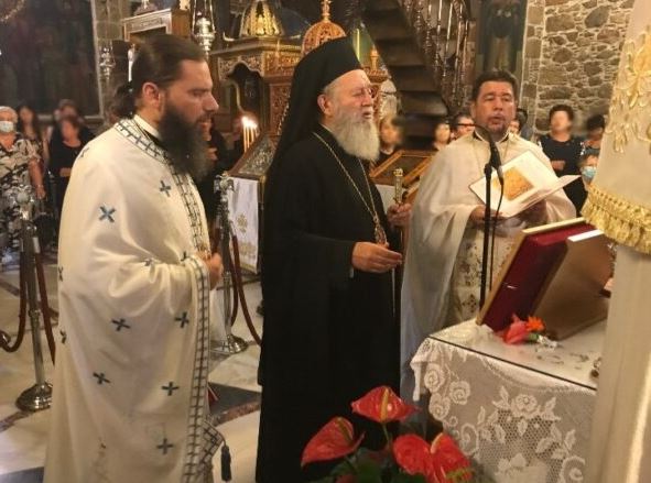 Μάλιστα το βράδυ της Κυριακής 9 Αυγούστου 2020, στον Ιερό Ναό Κοιμήσεως της Θεοτόκου Βασιλικού Χαλκίδος, τελέστηκε η καθιερωμένη προεόρτιος Ιερά Αγρυπνία επί τη Κοιμήσει της Θεοτόκου, στην οποία χοροστάτησε ο Σεβασμιώτατος κ. Χρυσόστομος, ενώ συλλειτούργησαν ο Αρχιμ. Χριστοφόρος Παπαθανασίου-Εφημέριος της Ι. Μ. Αγ. Γεωργίου ΑΡΜΑ, ο Πρωτοπρεσβύτερος Σταμάτιος Μπασδέκης-Εφημέριος της Ενορίας και αρκετοί πιστοί, οι οποίο με κατάνυξη και συνοχή καρδίας συμμετείχαν στις Ιερές Ακολουθίες.
