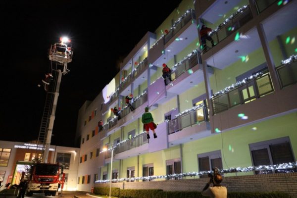 Κατά την εξέλιξη της εκδήλωσης, τα παιδιά είχαν την ευκαιρία να δουν από κοντά τους πυροσβέστες να πραγματοποιούν επίδειξη πυροσβεστικών επιχειρήσεων, καθώς η μπάντα του Πυροσβεστικού Σώματος παιάνιζε χριστουγεννιάτικες μελωδίες. Ο Άγιος Βασίλης και οι καλικάντζαροι μοίρασαν δώρα στο προαύλιο του νοσοκομείου και ιπτάμενοι πυροσβέστες κατέβαιναν με σχοινιά από όροφο σε όροφο, χαρίζοντας δώρα. Τα παιδιά χάρηκαν και εξέφρασαν τον ενθουσιασμό τους, με το δικό τους μοναδικό τρόπο.
