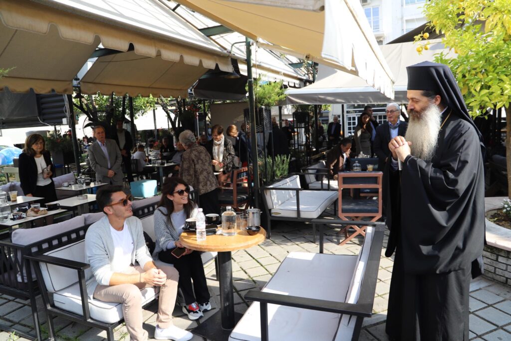 Μετά το πέρας τη Θείας Λειτουργίας, ο Σεβασμιώτατος Μητροπολίτης κ. Συμεών κατευθυνόμενος προς το Επισκοπείο έκανε μια μικρή στάση στις καφετέριες που βρίσκονται στην πλατεία και συνομίλησε με κατοίκους της πόλης.