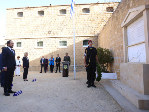 Στις 8 το πρωί, ο Πρόεδρος Χριστοδουλίδης πλαισιωμένος από τους Υπουργούς Εργασίας και Άμυνας, καθώς και τον Υπουργό Εθνικής Άμυνας της Ελλάδας, τον Πρέσβη της Ελλάδαςς στην Κύπρο, αλλά και την ηγεσία της Εθνικής Φρουράς, κατέθεσε στεφάνι στον ανδριάντα του Εθνάρχη Αρχιεπισκόπου Μακαρίου Γ’, πρώτου Προέδρου της Κυπριακής Δημοκρατίας.