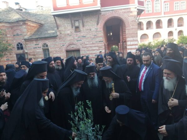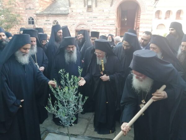Λίγο πριν την αναχώρηση του ο Οικουμενικός Πατριάρχης αφού βγήκε αρχικά την καθιερωμένη φωτογραφία με όλη την αδελφότητα, στη συνέχεια φύτεψε μία ελιά στο προαύλιο της Μονής Βατοπαιδίου, σύμβολο καταλλαγής, ευφορίας και ειρήνης.