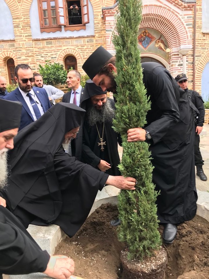 Πριν την αναχώρησή του από την Ιερά Μονή Παντοκράτορος, ο Παναγιώτατος Οικουμενικός Πατριάρχης κ.κ. Βαρθολομαίος φύτεψε στην αυλή της Μονής ένα κυπαρίσσι, σε μια πράξη που συνηθίζει ο Πράσινος Πατριάρχης, σε ανάμνηση της παρουσίας του αλλά και της αγάπης του για το περιβάλλον.