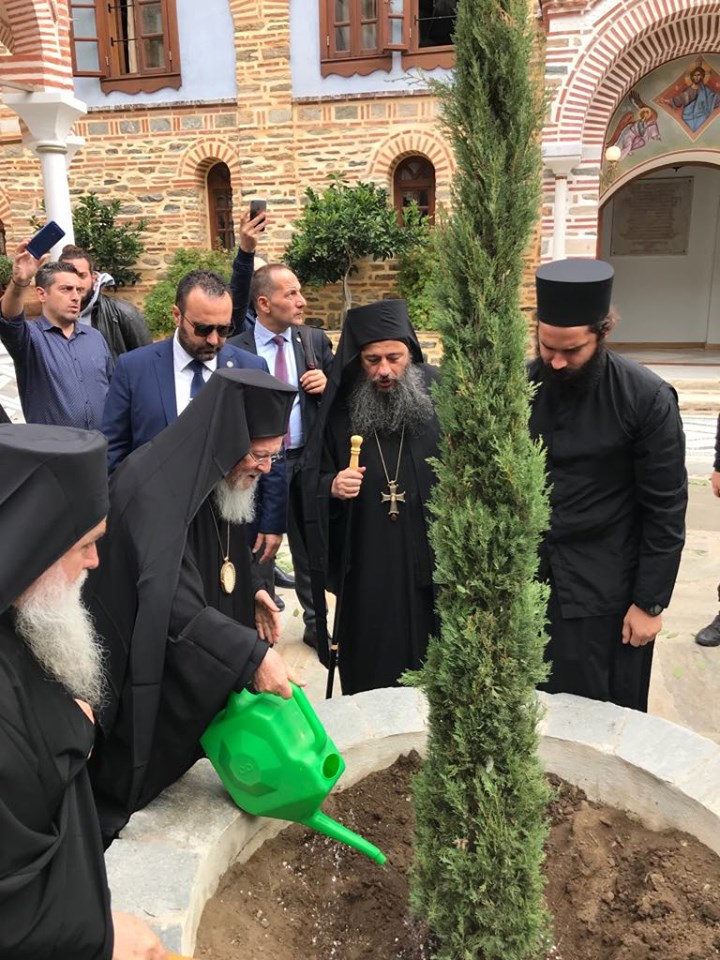 Πριν την αναχώρησή του από την Ιερά Μονή Παντοκράτορος, ο Παναγιώτατος Οικουμενικός Πατριάρχης κ.κ. Βαρθολομαίος φύτεψε στην αυλή της Μονής ένα κυπαρίσσι, σε μια πράξη που συνηθίζει ο Πράσινος Πατριάρχης, σε ανάμνηση της παρουσίας του αλλά και της αγάπης του για το περιβάλλον.