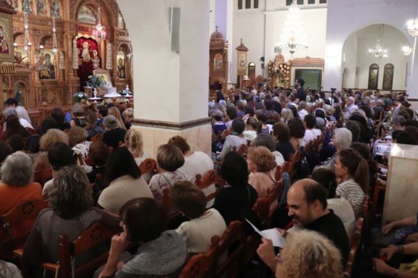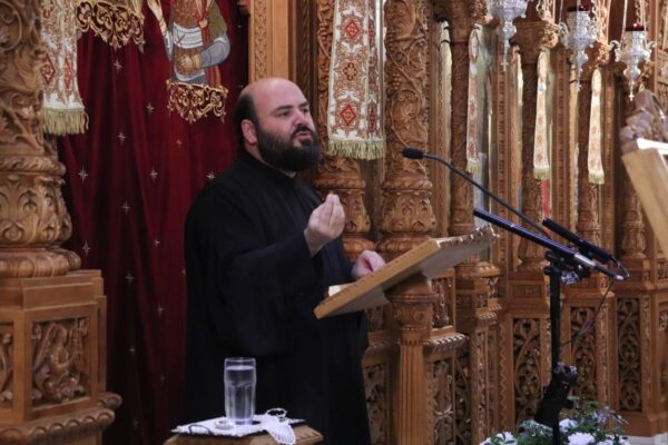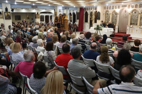 Αν και οι εκδηλώσεις βρίσκονται στη 13η ημέρα, ο Ιερός Ναός ήταν κατάμεστος από πιστούς, οι οποίοι με μεγάλη προσοχή άκουσαν την υπέροχη ομιλία που έκανε ο Αιδεσιμολογιώτατος Πρωτοπρεσβύτερος π. Χαράλαμπος Παπαδόπουλος (π. Λίβυος), εφημέριο του Ιερού Ναού Αγίας Ειρήνης Πύργου Μονοφατσίου Ηρακλείου Κρήτης. Θέμα της ομιλίας του, ήταν: “Πως να αγαπώ τον εαυτό μου, χωρίς να είμαι εγωιστής”.