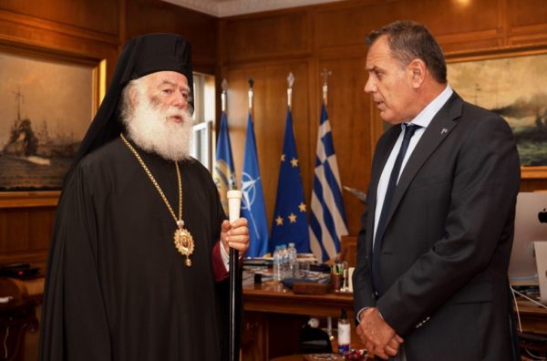 Ο Υπουργός Εθνικής Αμύνης κ. Νικόλαος Παναγιωτόπουλος δέχθηκε την Παρασκευή στο γραφείο του, τον Πάπα και Πατριάρχη Αλεξανδρείας και πάσης Αφρικής κ.κ. Θεόδωρο Β΄.