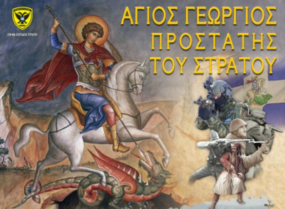 Σήμερα τιμάται σε όλα τα στρατόπεδα του Στρατού Ξηράς η μνήμη του Αγίου ενδόξου Μεγαλομάρτυρος Γεωργίου του Τροπαιοφόρου, ο οποίος είναι προστάτης του στρατού, με την εικόνα του να κοσμεί τις ένδοξες πολεμικές σημαίες.
