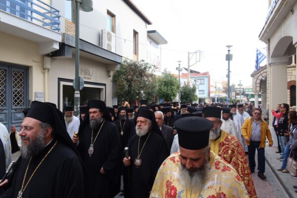Το πρωί της Κυριακής, 24 Νοεμβρίου, θα συνιερουργήσει στον Ιερό Ναό της Παναγίας Φανερωμένης Αιγίου μετά του Σεβασμιωτάτου Μητροπολίτου Καλαβρύτων και Αιγιαλείας κ. Ιερωνύμου και το εσπέρας θα επιστρέψει στην Ερμούπολη.