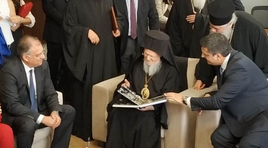 Ο υπουργός Εσωτερικών κ. Τάκης Θεοδωρικάκος στον χαιρετισμό του κατά την τελετή εγκαινίων του νέου, σύγχρονου κτιρίου Υπηρεσιών της Περιφέρειας Κεντρικής Μακεδονίας που πραγματοποίησε σήμερα στη Θεσσαλονίκη ο Οικουμενικός Πατριάρχης κ.κ. Βαρθολομαίος αναφέρθηκε στον σπουδαίο αγώνα του «Πράσινου» Πατριάρχη.