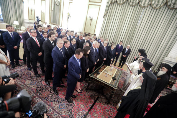 Την ορκωμοσία των μελών της νέας Κυβέρνησης τέλεσε ο Αρχιεπίσκοπος Αθηνών και πάσης Ελλάδος κ. Ιερώνυμος παρουσία του Προέδρου της Ελληνική Δημοκρατίας κ. Προκοπίου Παυλόπουλου και του Πρωθυπουργού κ. Κυριάκου Μητσοτάκη στο Προεδρικό Μέγαρο.