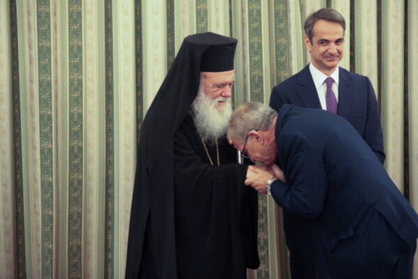 «Ο Θεός να σας δώσει δύναμη και υπομονή, ώστε τα σχέδια σας να πραγματοποιηθούν» ευχήθηκε ο Αρχιεπίσκοπος Αθηνών και πάσης Ελλάδος κ. Ιερώνυμος στον νέο Πρωθυπουργό κ. Κυριάκο Μητσοτάκη αμέσως μετά την τελετή ορκωμοσίας στο Προεδρικό Μέγαρο.
