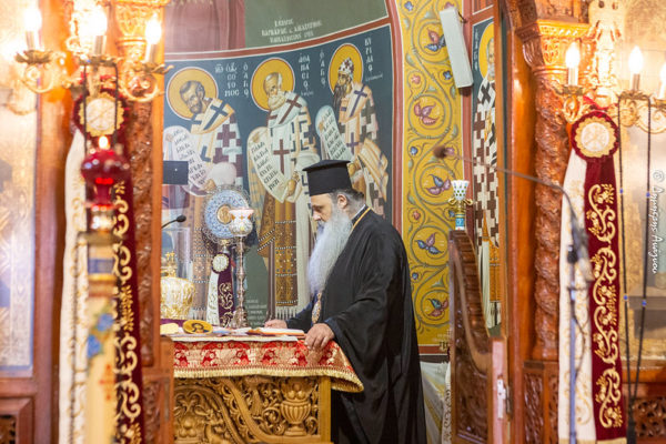 Στον Ιστορικό Ναό της Παναγίας (Κοιμήσεως της Θεοτόκου) Τιθορέας τελέσθηκε η Αρχιερατική Θεία Λειτουργία υπό του Σεβασμιωτάτου Ποιμενάρχου και Μητροπολίτου της Φθιώτιδος κ. Συμεών, στην οποία παρέστη συμπροσευχόμενος και ο Σεβασμιώτατος Μητροπολίτης Σταγών και Μετεώρων κ. Θεόκλητος, καρδιακός και ιδιαίτερα αγαπητός φίλος και αδελφός του μακαριστού Επισκόπου κυρού Χρυσοστόμου.