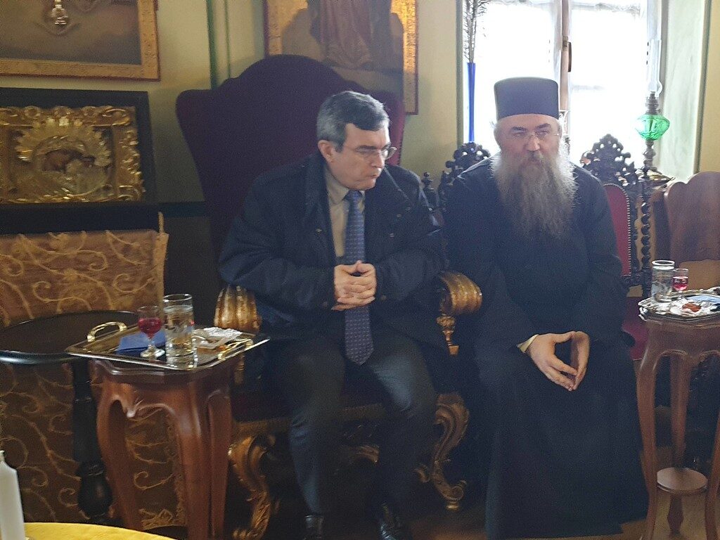Ο κ. Υφυπουργός προσκύνησε στον Ιερό Ναό της Κοιμήσεως της Θεοτόκου και ακολούθως παρεκάθησε στο καθιερωμένο αγιορείτικο κέρασμα.