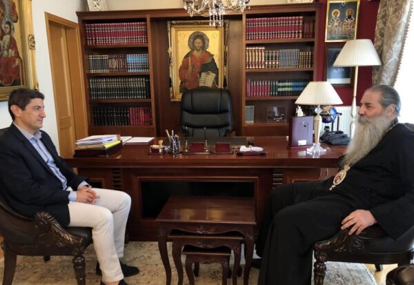 Τον Υφυπουργό Πολιτισμού και Αθλητισμού κ. Ελευθέριο Αυγενάκη, υποδέχθηκε ο Σεβασμιώτατος Μητροπολίτης Πειραιώς κ.Σεραφείμ σήμερα Τετάρτη 15 Ιουλίου 2020, στα γραφεία της Ιεράς Μητροπόλεως Πειραιώς.