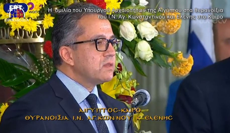 Παρών στα θυρανοίξια του Ιερού Ναού Αγίων Κωνσταντίνου και Ελένης στο Κάιρο ήταν και ο υπουργός Αρχαιοτήτων της Αιγύπτου Χάλεντ Αλ Ενάνι, ως εκπρόσωπος του Προέδρου της χώρας Αμπντούλ Φατάχ Αλ Σίσι.