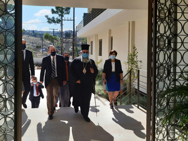 Τους υψηλούς επισκέπτες υποδέχθηκε στα Γραφεία της Μητροπόλεως ο Σεβασμιώτατος Μητροπολίτης Ρεθύμνης και Αυλοποτάμου κ. Ευγένιος, ο οποίος τους ενημέρωσε για το ποιμαντικό και κοινωνικό έργο της Ιεράς Μητροπόλεως, που πλέον διακονείται με έδρα το Κέντρο Πολιτισμικής και Κοινωνικής Διακονίας «ΘΕΟΜΗΤΩΡ». Ακολούθως ο Σεβασμιώτατος οδήγησε και ξενάγησε τους Υπουργούς στους χώρους του «ΘΕΟΜΗΤΩΡ», καθώς και στις εγκαταστάσεις του «ΚΕΝΤΡΟΥ ΔΙΗΜΕΡΕΥΣΗΣ – ΗΜΕΡΗΣΙΑΣ ΦΡΟΝΤΙΔΑΣ για άτομα με αναπηρία, Νοητική Υστέρηση «ΑΓΑΠΗ», που φιλοξενείται σε αυτό και στο οποίο προεδρεύει.