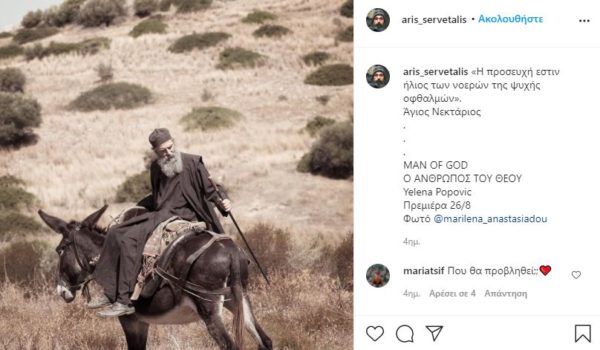 Με δημοσιεύσεις στον προσωπικό του λογαριασμό στο instagram, ο πρωταγωνιστής της ταινίας «Ο Άνθρωπος του Θεού» (Man of God), Άρης Σερβετάλης (Άγιος Νεκτάριος), παραθέτει πνευματικά αποφθέγματα από τους λόγους του Αγίου Νεκταρίου.