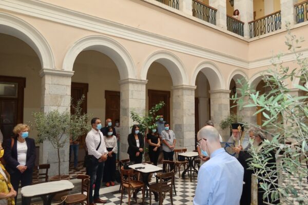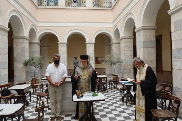 10/09/2020 10/09/2020 Κατόπιν προσκλήσεως του Δικηγορικού Συλλόγου Σύρου και του νέου Προέδρου, του κ. Κωνσταντίνου Φιφλή, ο Σεβασμιώτατος Μητροπολίτης Σύρου κ. Δωρόθεος Β΄ μετέβη την Πέμπτη 10 Σεπτεμβρίου στο εμβληματικό Δημαρχιακό Μέγαρο Ερμουπόλεως, στις αίθουσες του οποίου στεγάζονται οι Δικαστικές Υπηρεσίες, και τέλεσε στο αίθριό του, σύμφωνα με τα ισχύοντα υγειονομικά πρωτόκολλα, τον Αγιασμό για την έναρξη...