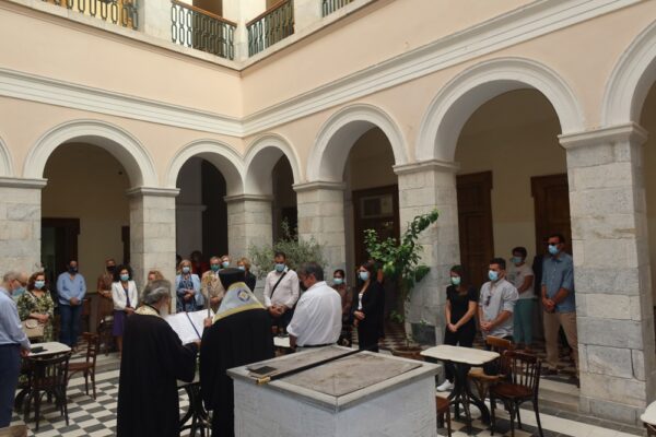 Κατόπιν προσκλήσεως του Δικηγορικού Συλλόγου Σύρου και του νέου Προέδρου, του κ. Κωνσταντίνου Φιφλή, ο Σεβασμιώτατος Μητροπολίτης Σύρου κ. Δωρόθεος Β΄ μετέβη την Πέμπτη 10 Σεπτεμβρίου στο εμβληματικό Δημαρχιακό Μέγαρο Ερμουπόλεως, στις αίθουσες του οποίου στεγάζονται οι Δικαστικές Υπηρεσίες, και τέλεσε στο αίθριό του, σύμφωνα με τα ισχύοντα υγειονομικά πρωτόκολλα, τον Αγιασμό για την έναρξη του νέου Δικαστικού Έτους, ενώπιον Δικαστών, του Προέδρου και Μελών του Δικηγορικού Συλλόγου Σύρου και Δικαστικών Υπαλλήλων.