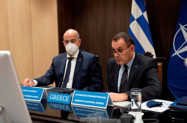 Ο υπουργός Εθνικής Αμύνης κ. Νικόλαος Παναγιωτόπουλος και ο υπουργός Εξωτερικών κ. Νίκος Δένδιας συμμετείχαν χθες, στην έκτακτη κοινή συνεδρίαση των Υπουργών Εξωτερικών και Άμυνας του ΝΑΤΟ, η οποία πραγματοποιήθηκε μέσω τηλεδιασκέψεως στην Αίθουσα ΣΑΓΕ του Υπουργείου Εθνικής Αμύνης.