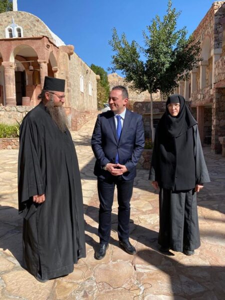 Στην Ιερά Μονή της Αγίας Αικατερίνης στο όρος Σινά βρέθηκε σήμερα ο υφυπουργός Εξωτερικών κ. Κωνσταντίνος Βλάσης, ολοκληρώνοντας παράλληλα και την επίσκεψη του στην Αίγυπτο.