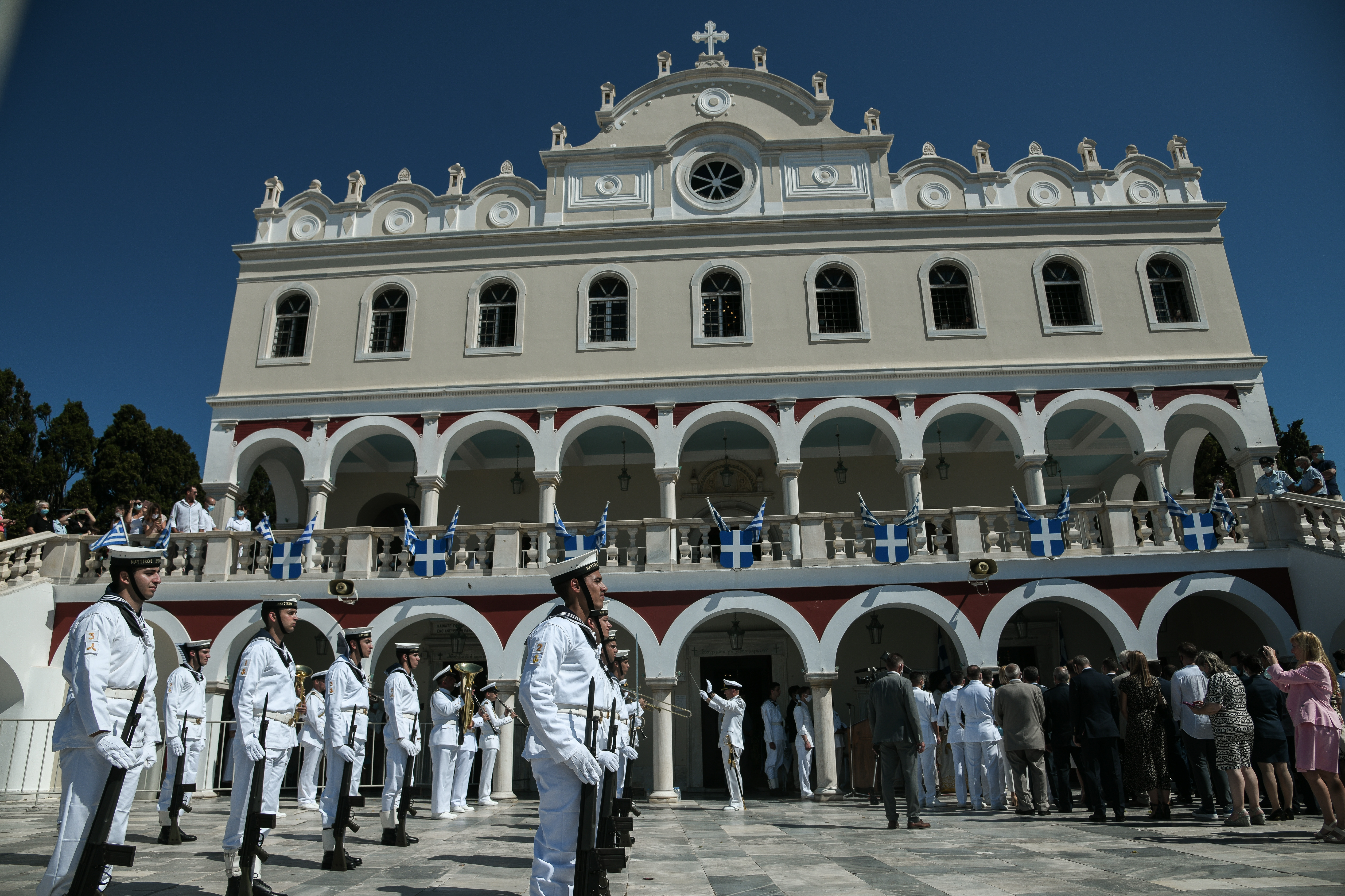 Δείτε τις εικόνες έξω από το Προσκύνημα της Παναγίας στην Τήνο