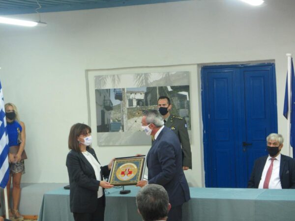 Κατά την υποδοχή χθες της Προέδρου της Δημοκρατίας ο Σεβασμιώτατος της μετέφερε τις ευχές του Παναγιωτάτου Οικουμενικού Πατριάρχου κ.κ. Βαρθολομαίου για τη παρουσία της στο νησί.