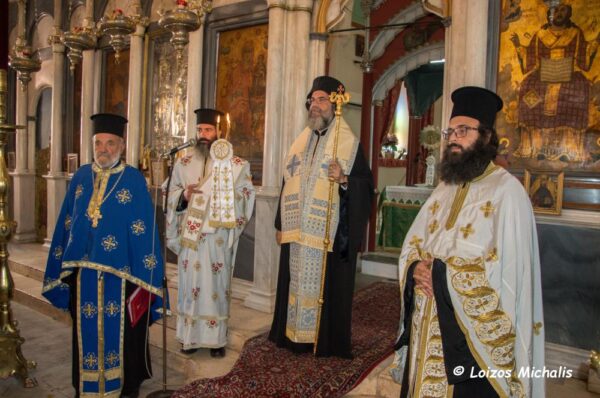 Ο Σεβασμιώτατος το πρωί της Κυριακής χοροστάτησε του Όρθρου και τέλεσε την Θεία Λειτουργία εις τον Μητροπολιτικό Ι. Ναό Αγίων Κωνσταντίνου και Ελένης με συλλειτουργούς του, εκτός του Διακόνου του, τον π. Γεώργιο Μαλτέζο, Εφημέριο του Ιερού Ναού και Αρχιερατικό Επίτροπο καθώς και τον π. Χρήστο Συμεωνίδη, Εφημέριο του Ιερού Ναού Αγίου Γεωργίου Πηγαδιού Καστελλορίζου.