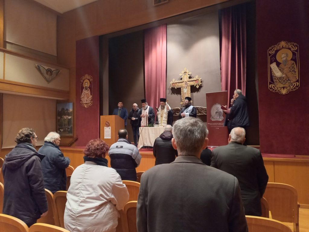 Μετά το πέρας του Αγιασμού ο π. Θεολόγος έλαβε τον λόγο και μετέφερε τις ευλογίες του Μακαριωτάτου Αρχιεπισκόπου κ. Ιερωνύμου οραματιστού, Ιδρυτού και Προέδρου του Ιδρύματος και ευχαρίστησε τον Σεβασμιώτατο για την φιλοξενία του και την ευλογητική του παρουσία κατά την έναρξη του προγράμματος. Ακολούθως αναφέρθηκε στους διδάσκοντες και στους στόχους του προγράμματος 56 ωρών «ΕΠΙΜΟΡΦΩΣΗ ΕΜΠΕΙΡΟΤΕΧΝΩΝ ΨΑΛΤΩΝ ΚΑΙ ΠΑΡΑΔΟΣΙΑΚΩΝ ΜΟΥΣΙΚΩΝ», που είναι να γνωρίσουν οι επιμορφούμενοι τις βασικές και τις αισθητικές αρχές της ψαλτικής τέχνης και της παραδοσιακής μουσικής και να κατανοήσουν ότι η ψαλτική τέχνη αποτελεί μακραίωνη και παραδοσιακή συνιστώσα του ελληνικού μουσικού πολιτισμού. Επίσης ανέπτυξε την θεματική ενότητα «Αισθητική και ιεροπρέπεια του ιεροψάλτου σήμερα» και επισήμανε ότι οι ιεροψάλτες που τόσο αξιόλογο έργο προσφέρουν μέσα στην Εκκλησία μας, θα μπορούν μέσω του προγράμματος να εξοικειωθούν με την οκταηχία της εκκλησιαστικής μουσικής και να εμπλουτίσουν τις πρακτικές τους δεξιότητες στην ψαλτική.