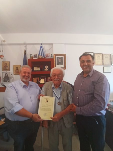 Το Δ.Σ. με ομόφωνη απόφαση για την προσφορά του αυτή του επέδωσε έπαινο και το μετάλλιο του Εφόρου του Αγίου Ιωάννη του Δαμασκηνού.