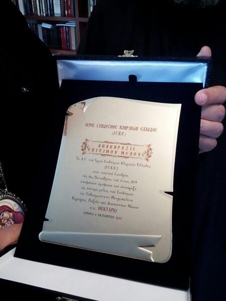 Τον Σεβασμιώτατο Μητροπολίτη Κερκύρας, Παξών και Διαποντίων Νήσων κ. Νεκτάριο επισκέφθηκαν το μεσημέρι της Τρίτης 18 Φεβρουαρίου 2020 ο Πρόεδρος Πρωτ. Γεώργιος Σελλής και ο Αντιπρόεδρος του Ιερού Συνδέσμου Κληρικών Ελλάδος Πρωτ. Γεώργιος Βαμβακίδης και επέδωσαν εκ μέρους του ΙΣΚΕ πλακέτα και την απόφαση της ανακήρυξης του Μητροπολίτου Κερκύρας ως επίτιμου μέλους του ΙΣΚΕ.