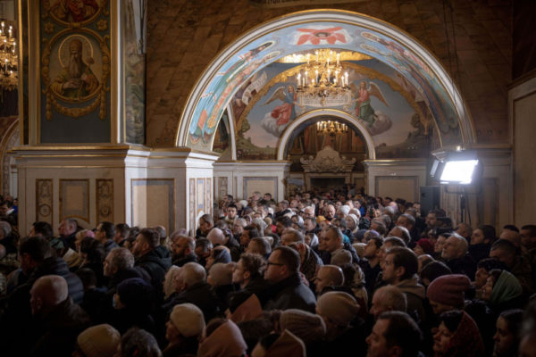 Στην Ουκρανία, εκατοντάδες πιστοί συγκεντρώθηκανανήμερα των Χριστουγέννων για την ιστορική λειτουργία στο γνωστό μοναστήρι της Λαύρας των Σπηλαίων στο Κίεβο.