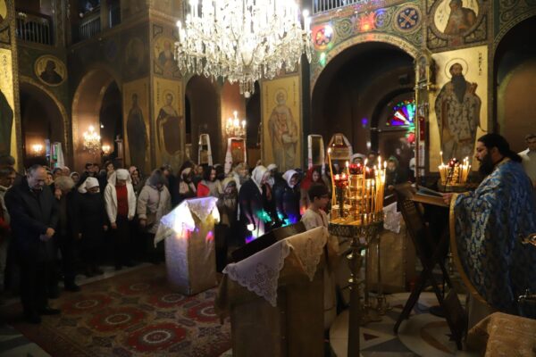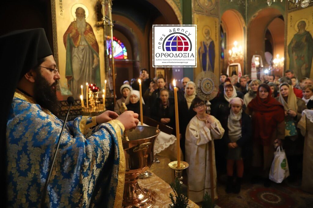 Στον ιστορικό ναό της Αγίας Τριάδας επί της οδού Φιλελλήνων πλήθος πιστών Ελλήνων αλλά και αρκετοί σλαβόφωνοι γιόρτασαν κατά την παράδοση τους τον αγιασμό των υδάτων. Πριν από τον αγιασμό τελέστηκε θεία λειτουργία του Μεγάλου Βασιλείου, προεξάρχοντος του προϊσταμένου Αρχιμανδρίτη Συνεσίου Βικτωράτου και του συνεφημερίου του π. Αλεξάνδρου Νόσεβιτς.