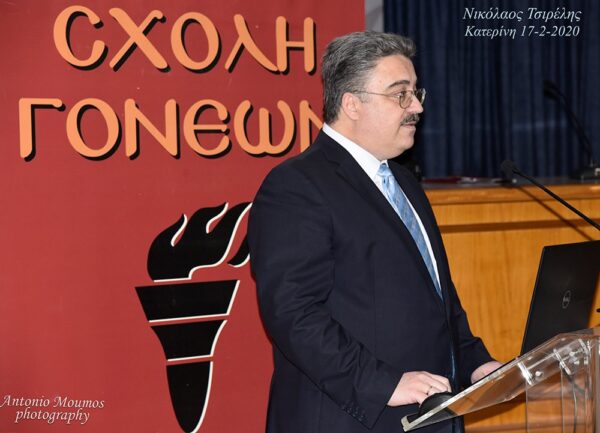 Ομιλητές ήταν ο δικηγόρος MSc Κανονικού Δικαίου κ. Νικόλαος Τσιρέλης και ο τ. Πρόεδρος Πανελλήνιας Ομοσπονδίας Πολιτιστικών Συλλόγων Μακεδόνων κ. Γεώργιος Τάτσιος. Την εκδήλωση «άνοιξε» το χορευτικό τμήμα του Συλλόγου Κρητών Πιερίας «Οι Σταυραετοί» το οποίο ενθουσίασε το κοινό της Σχολής Γονέων Κατερίνης με την λεβέντικη παρουσία τους.