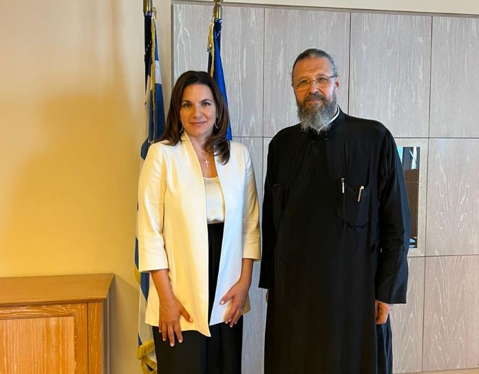 Η υπουργός Τουρισμού Όλγα Κεφαλογιάννη συναντήθηκε σήμερα με τον Πανοσιολογιώτατο Αρχιμανδρίτη π. Σπυρίδωνα Κατραμάδο, Γραμματέα της Διοικούσης Επιτροπής Προσκυνηματικών Περιηγήσεων της Εκκλησίας της Ελλάδος.