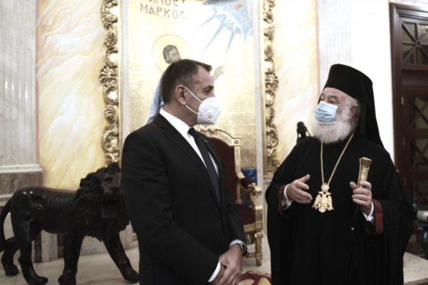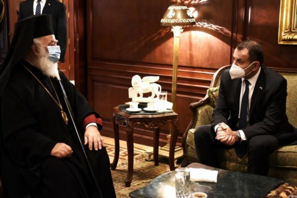 Ο Υπουργός Εθνικής Αμύνης κ. Νικόλαος Παναγιωτόπουλος συναντήθηκε την Παρασκευή 4 Δεκεμβρίου 2020, με τον Πάπα και Πατριάρχη Αλεξανδρείας και πάσης Αφρικής κ.κ. Θεόδωρο Β’ στην Αλεξάνδρεια, στο πλαίσιο της επίσημης επισκέψεώς του στην Αίγυπτο.