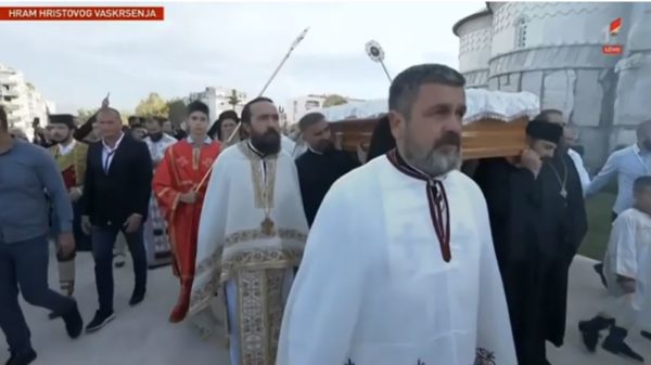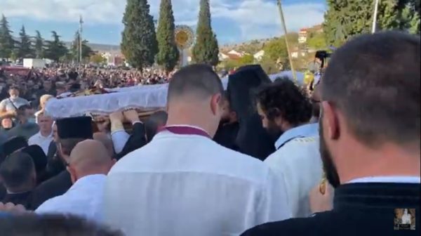Ολοκληρώθηκε η Εξόδιος Ακολουθία του Μητροπολίτη Μαυροβουνίου κυρού Αμφιλοχίου και οδηγείται προς την κρύπτη που θα ταφεί με τον κόσμο να τον συνοδεύει μέσα σε κλίμα συγκίνησης.